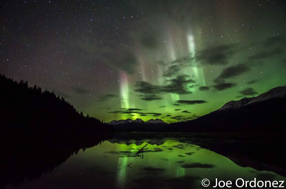 Fall is here in Haines and the Chilkat Valley. I wanted to get a photo of the Northern Lights reflecting on Mosquito Lake. Many years, this can be tricky as the fall can be fairly cloudy or the Northern Lights