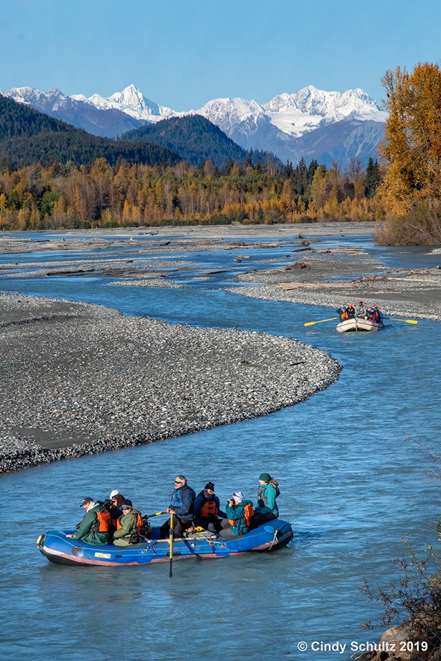 Arrive at the river in the heart of the Chilkat Bald Eagle Preserve, approximately 40 minutes away. Board your raft and enjoy a scenic float down the Chilkat River through the famous Chilkat Bald Eagle Preserve. You are immersed in the Alaskan wilderness, floating the silent river. Paddling is not required, as your expert guide will push the raft along, leaving your hands free for your binoculars or camera. Along the way, you will learn to spot bald eagles and gain an appreciation for the challenges that bald eagles face to survive.